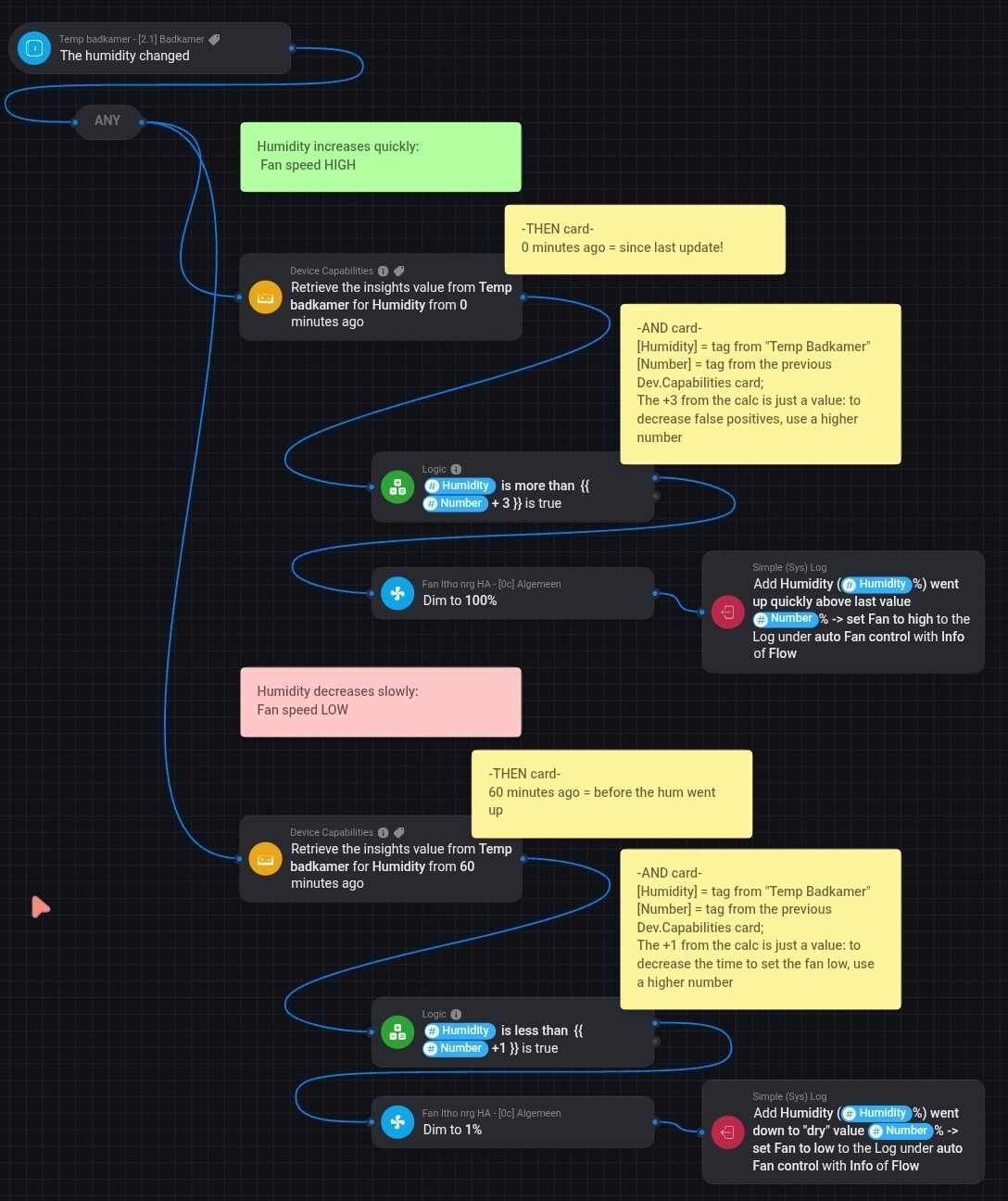 Dit is een manier om het te automatiseren. De truuk is om te schakelen op het verschil in vochtigheid, niet op vaste drempelwaardes: