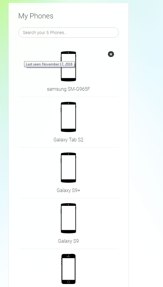 Within the top ‘flow’, only the account name shows up. With the lower ‘flow’, I see all the connected phones as presented in my earlier picture.