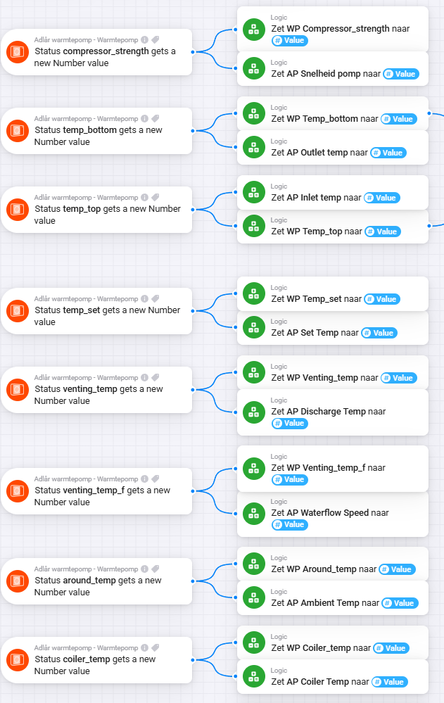 Hier een flow waar ik de inlet en outlet-temperaturen meet voor mijn dashboard.