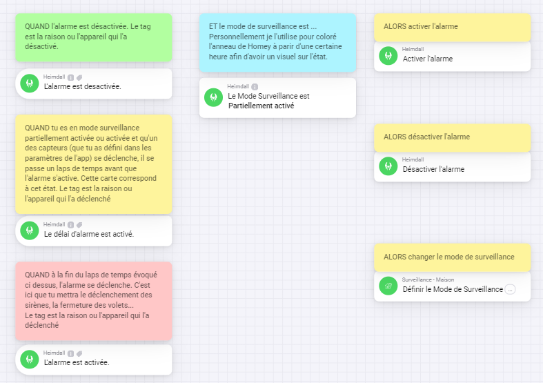 bonjour Arnaud, pourrais tu m’aider sur un problème concernant heimdall , je ne comprend pas a quoi sert le module ( alarm état ) il y a un bouton mais lorsqu’on clique dessus il ne se passe rien , sert il a quelque chose ce bouton ? y a t il des règles interessante a créer par rapport a ce module ? , concernant l’autre module ( surveillance ) j’ai pu commencer a créer mes flows et j’avoue m’arracher un peut les cheveux , j’ai du mal a saisir la logic parfois . sait tu comment créer un bouton virtuel car je souhaiterai en créer un pour activer toutes les sirènes et un autre pour désactiver toutes les sirènes , je n’arrive pas a trouver la méthode , merci d’avance pour on aide
