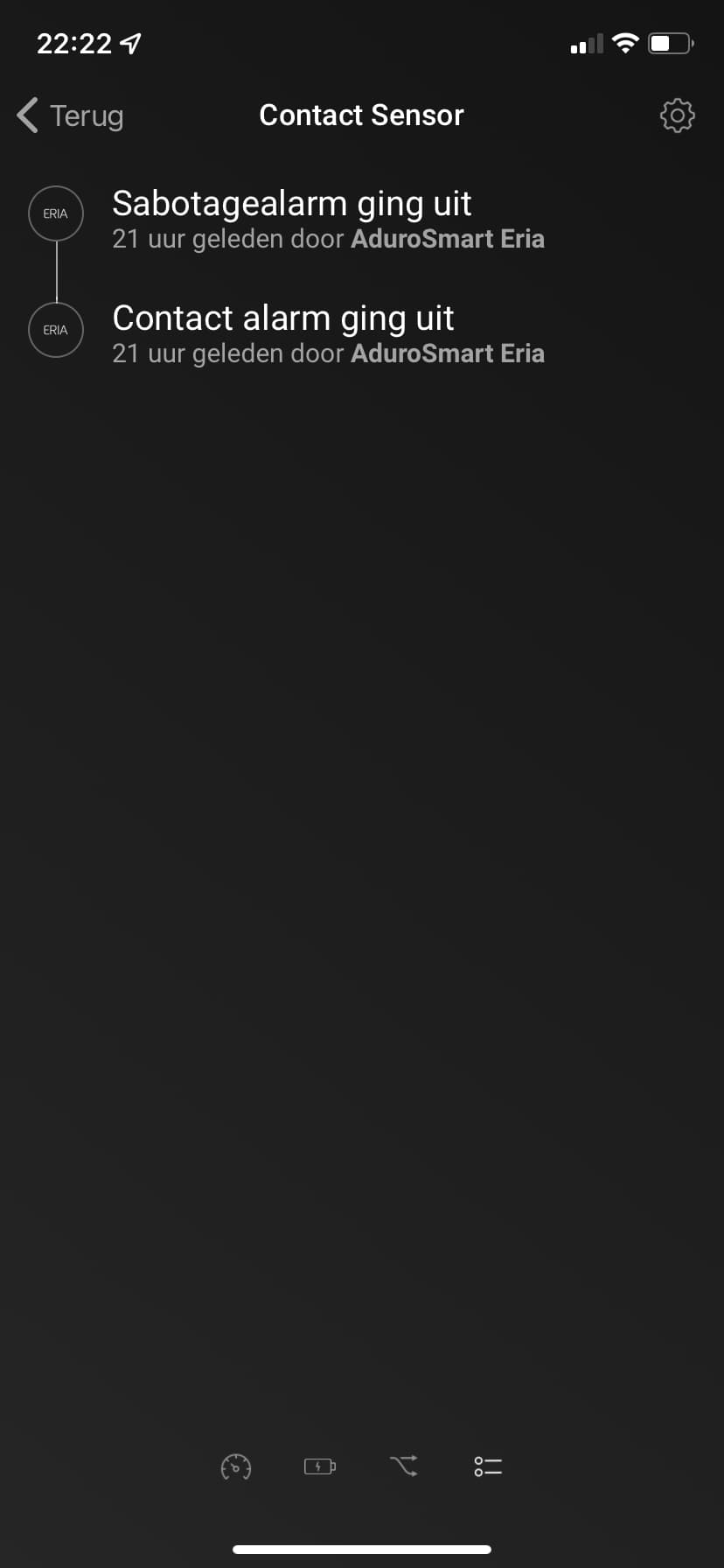 Geen idee hoe ik het sabotage alarm kan testen. Tijdens de installatie kwamen er twee meldingen in de log.