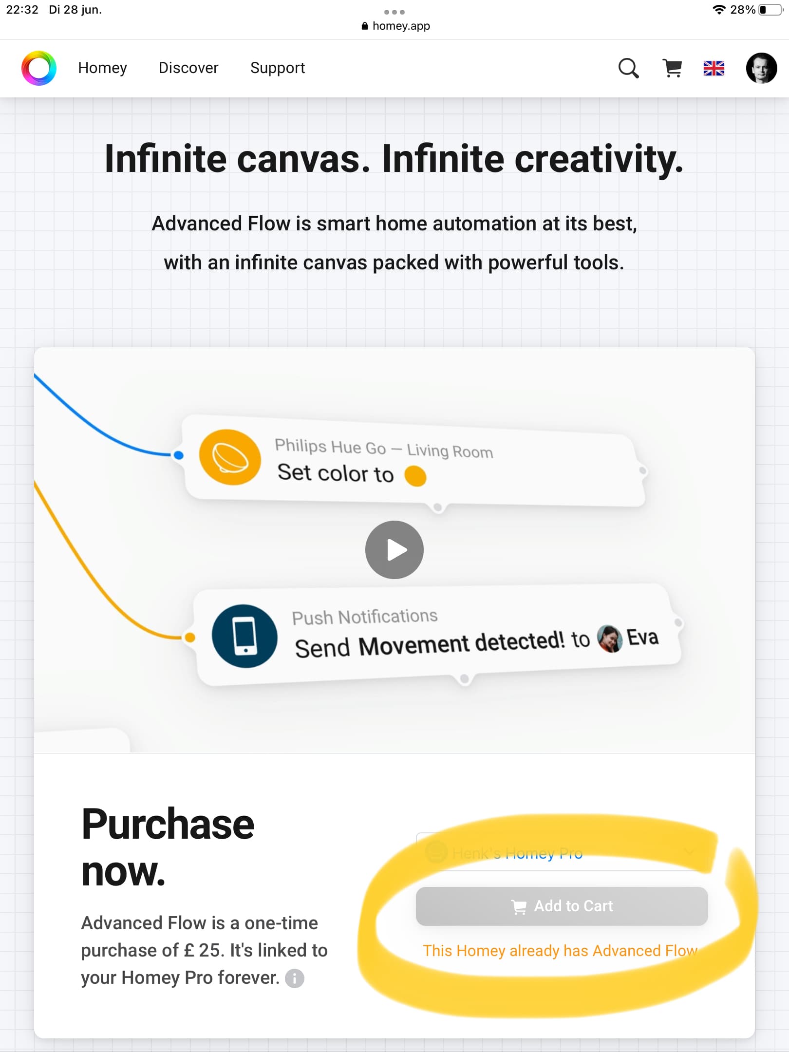 Hm, a licence for each device? As deleloper I have more than one. So in addition to the Homey itself I should pay x times for advanced flows to add the new tokens to my apps and test on the development Homey?