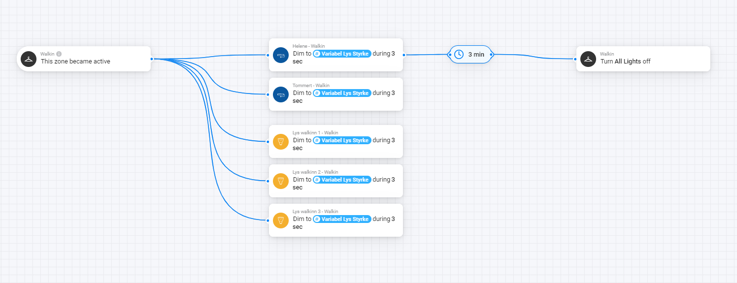 A simple flow is running at my walk in closet. Motion is triggered, lights turn on, the delay runs and the lights go off.