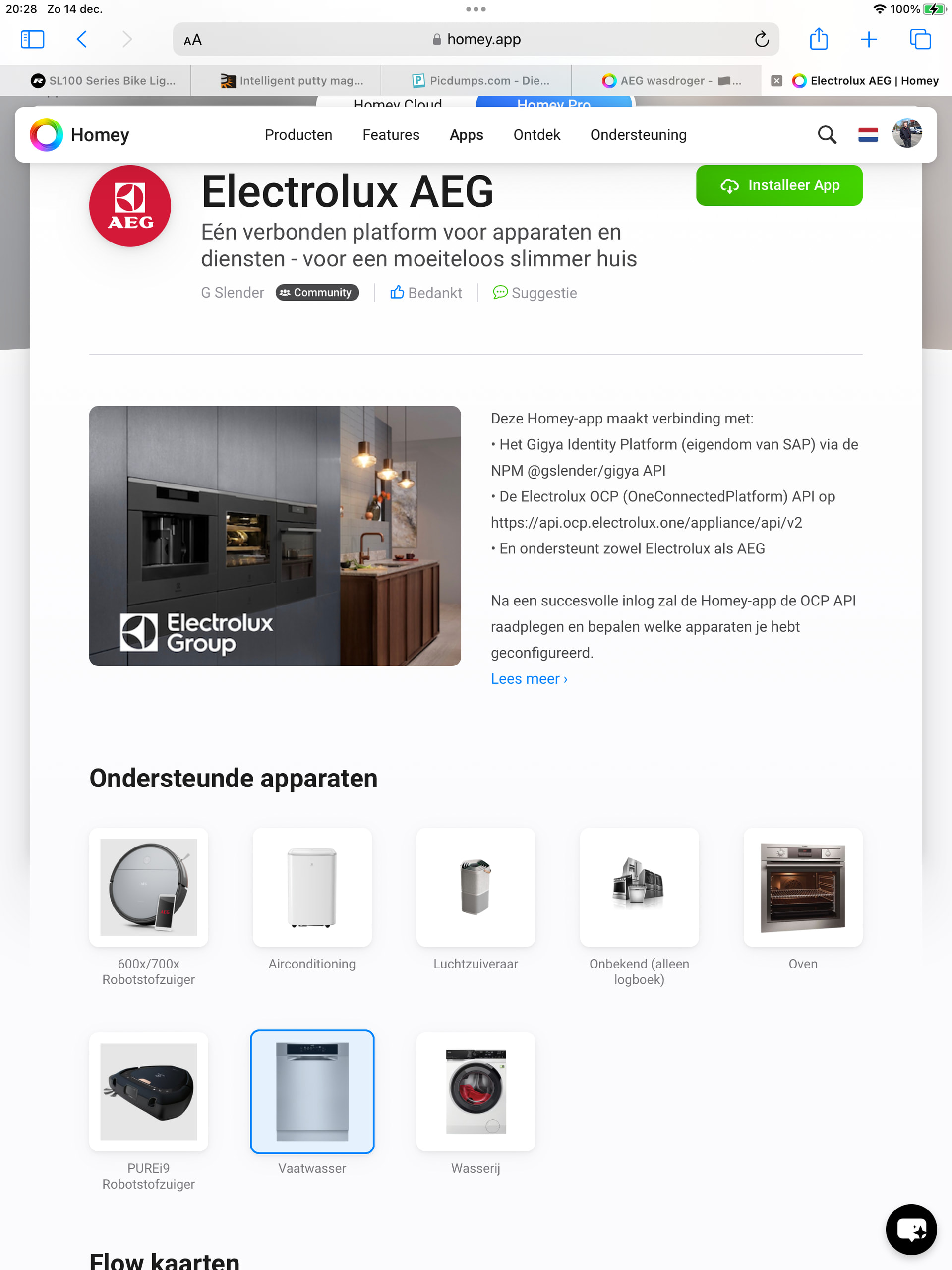 Ik kijk naar een nieuwe wasdroger en kom uit op een AEG. Nu is er een app voor AEG op Homey. Ik kan zien, dat je in een flow een opdracht kunt geven, maar welke opdrachten er uitgevoerd kunnen worden kan ik zo niet zien. Heeft iemand ervaring met deze app voor AEG wasdrogers?