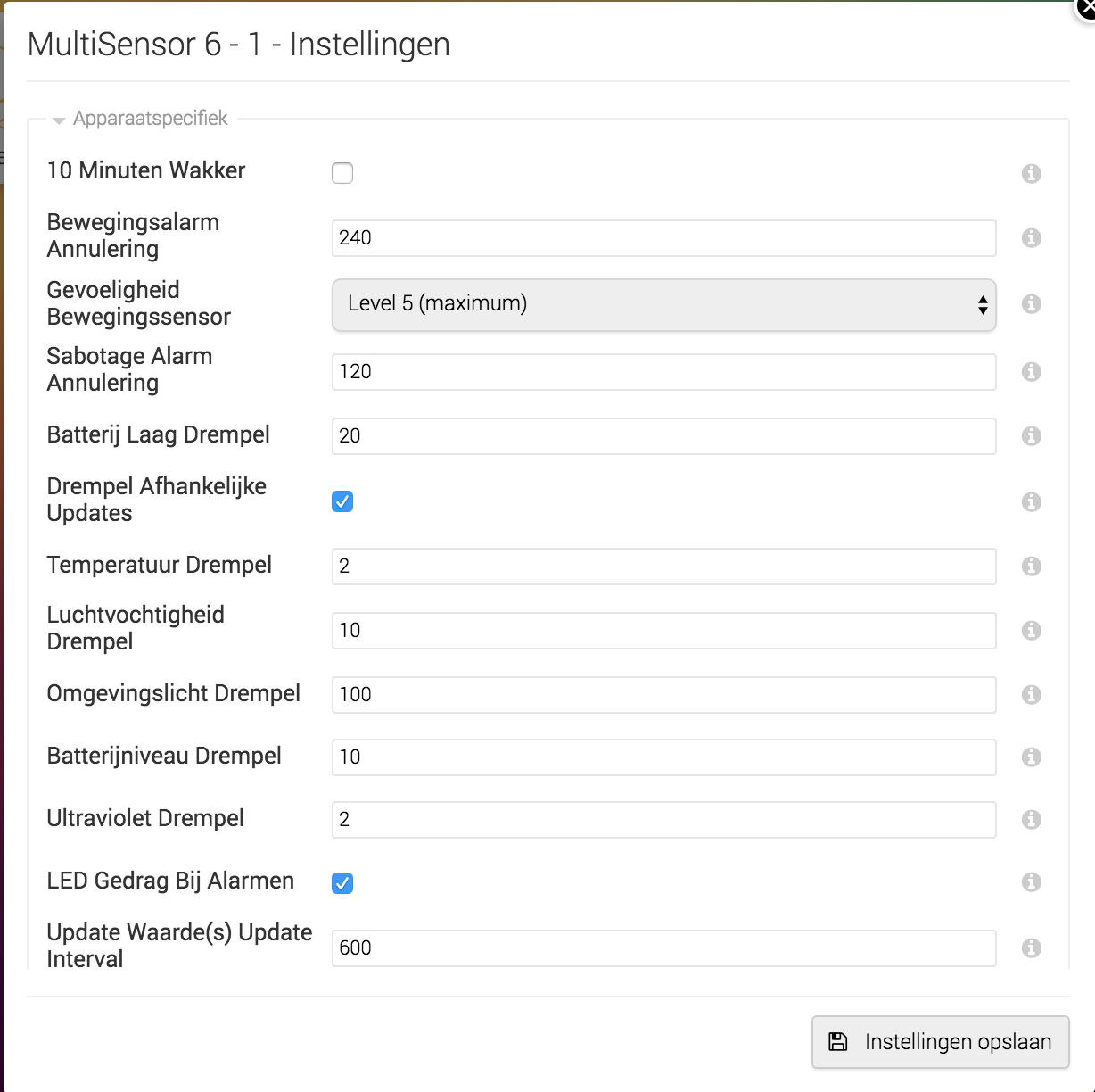 Voor zover ik kan zien staan mijn instellingen hetzelfde. Alle andere opties worden wel gevonden van de sensor, maar alleen de sensor blijft dus rood/zwart knipperen.
