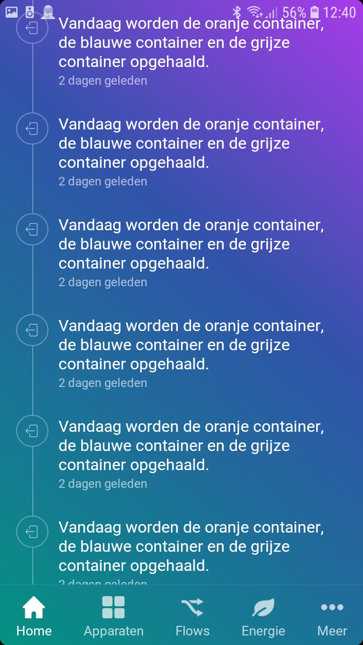 Meteen even dit topic kapen. Ik heb sinds een tijdje dat de data niet meer kloppen. Het papier wordt bijvoorbeeld op de laatste maandag van de maand opgehaald. De app gaf aan dat dat gisteren was, terwijl dat eigenlijk natuurlijk volgende week is. Hebben meer mensen hier last van?