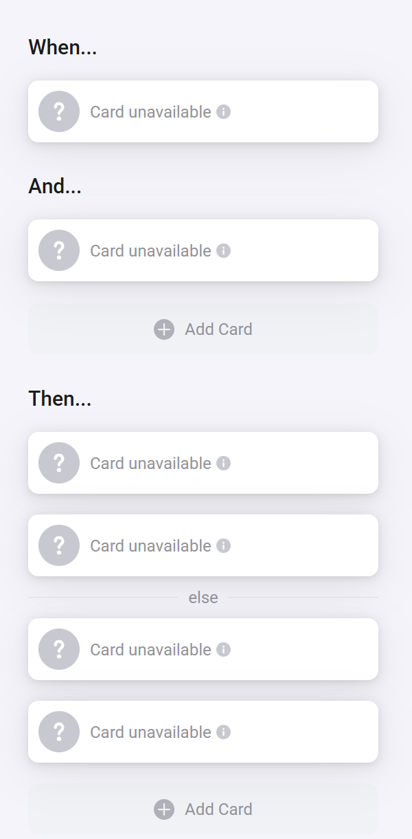In all 100’ish flows all cards are replaced with “Card not available” as if the device has been deleted.