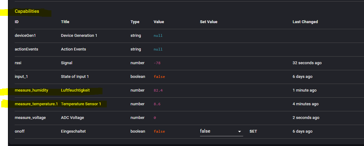 Denn wenn es nach Capabilities geht müssten auch die Temp. vom Shelly-UNI angezeigt werden: