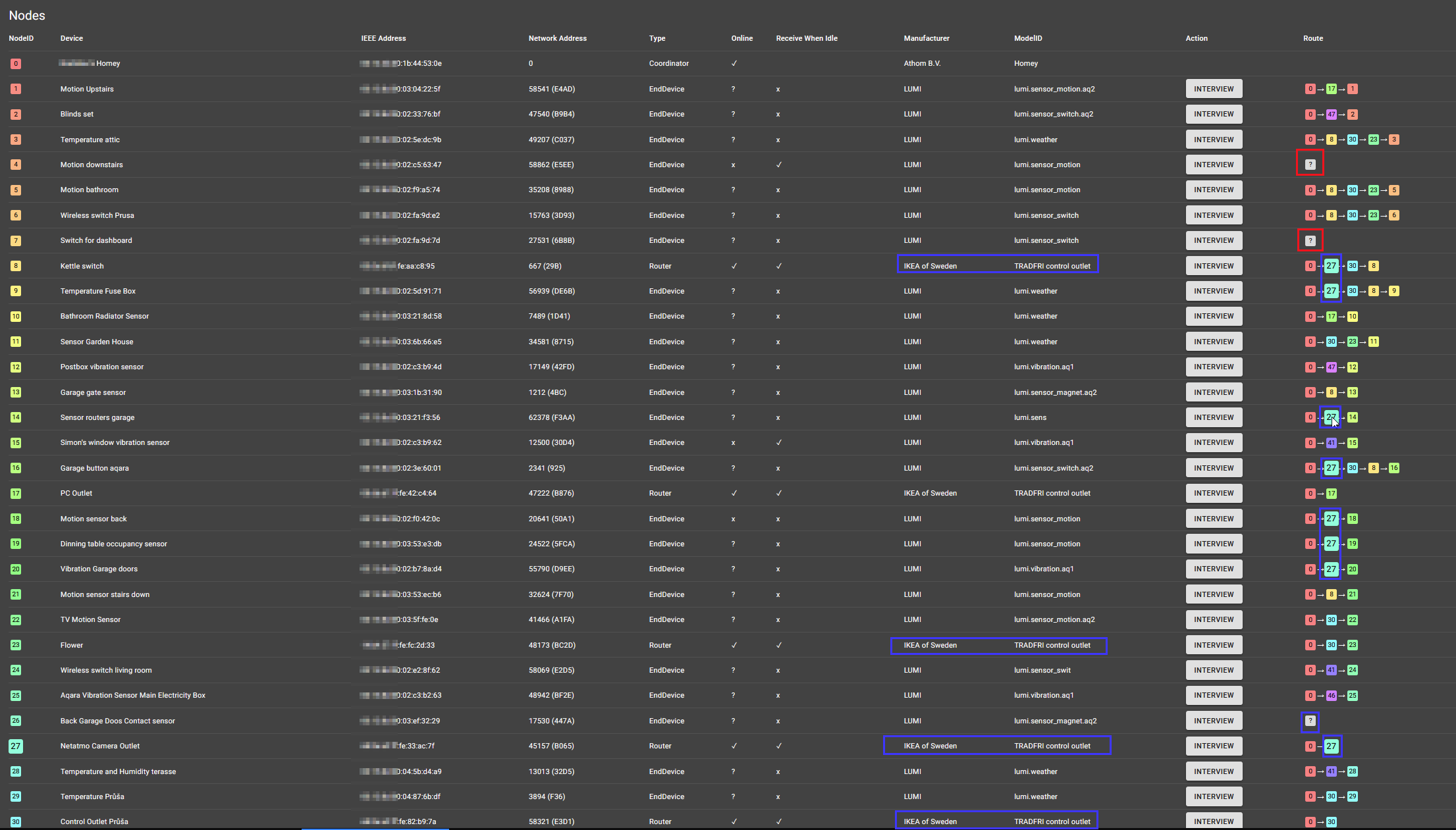 @TedTolboom, just by any chance and based on your expertise - in my case ALL of my Aqara/Xiaomi devices are purely routing via IKEA routers only (at least based on 1st look on development page while I know each device might have different mesh/paths) and quite intensively ignoring several Philips Hue Zigbee lights/routers (permanently powered).
