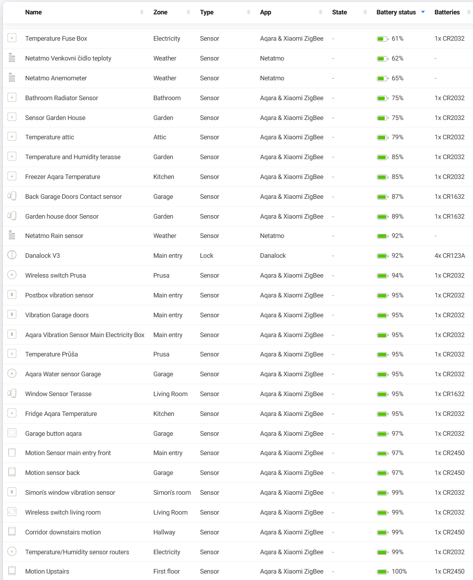 This is my list of the aqara only devices. Just 1 temp sensor that is misbehaving, concerning battery status.