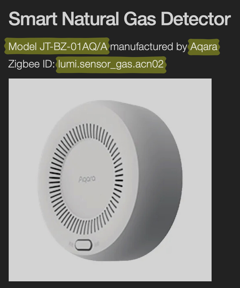 So to ensure that the Aqara Smart Natural Gas Detector is also supported, a corresponding device driver with the Zigbee ID lumi.sensor_gas.acn02 would need to be added to the Aqara app.