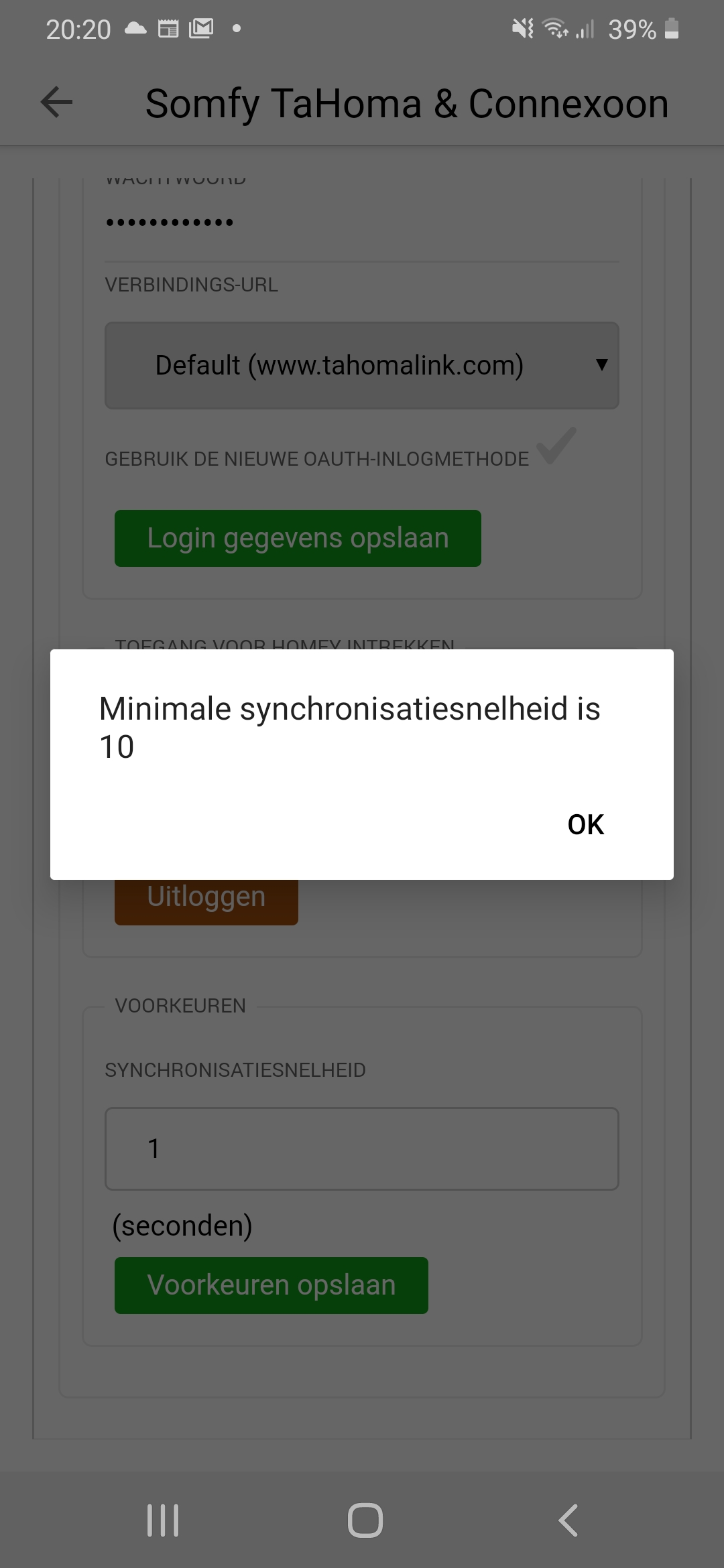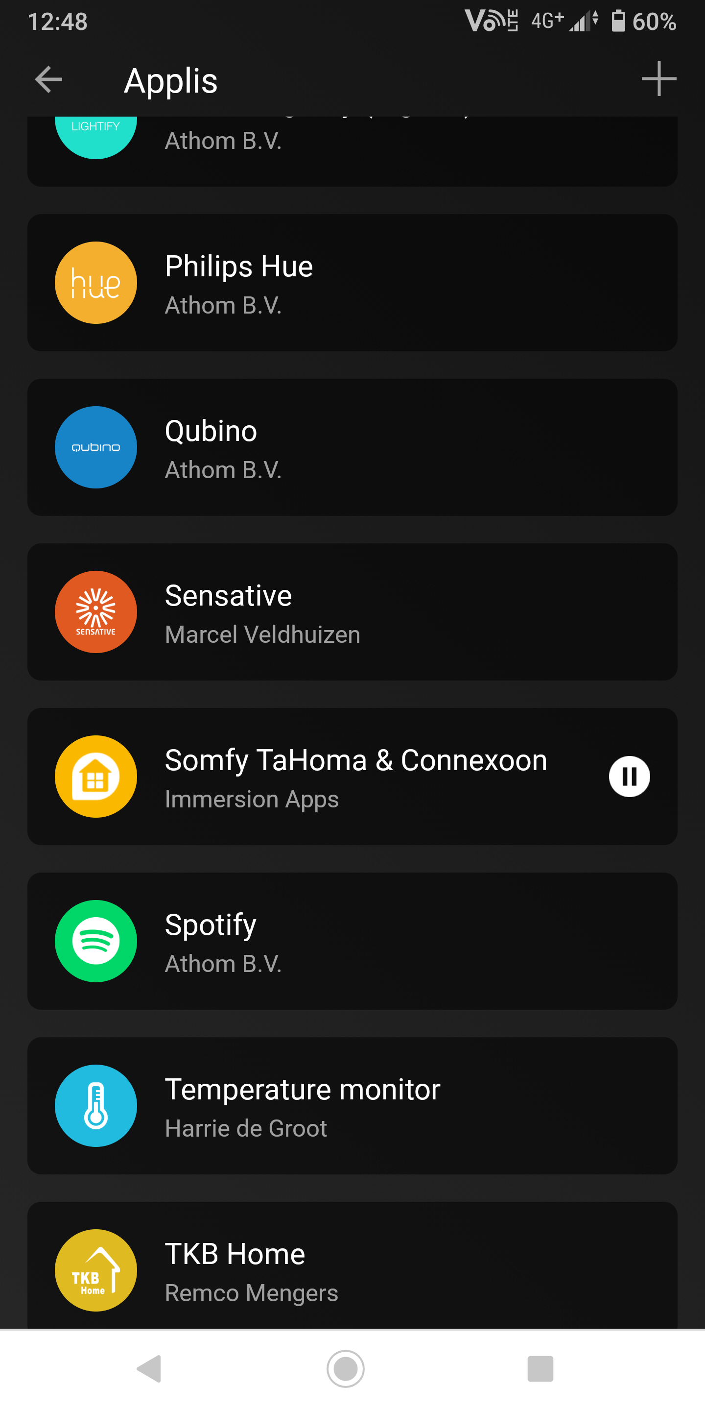On page with apps on Homey, the Somfy app has a signe with âIIâ (paused)!