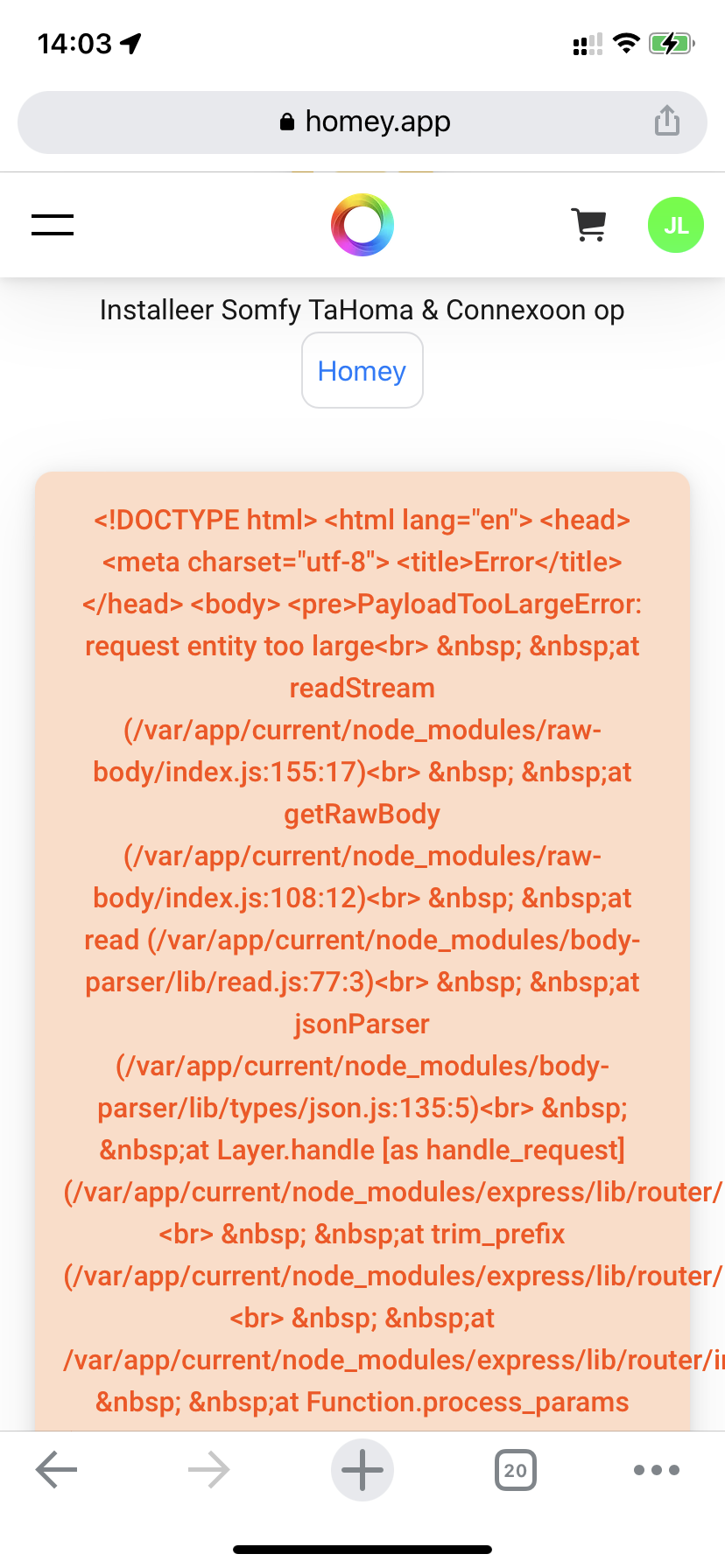 Well, if itâs any consolation, I get the same error when I try to access Tahoma via the web interface. That gives me hope that they will fix it as it is not limited to the Homey app but effects their system as well.