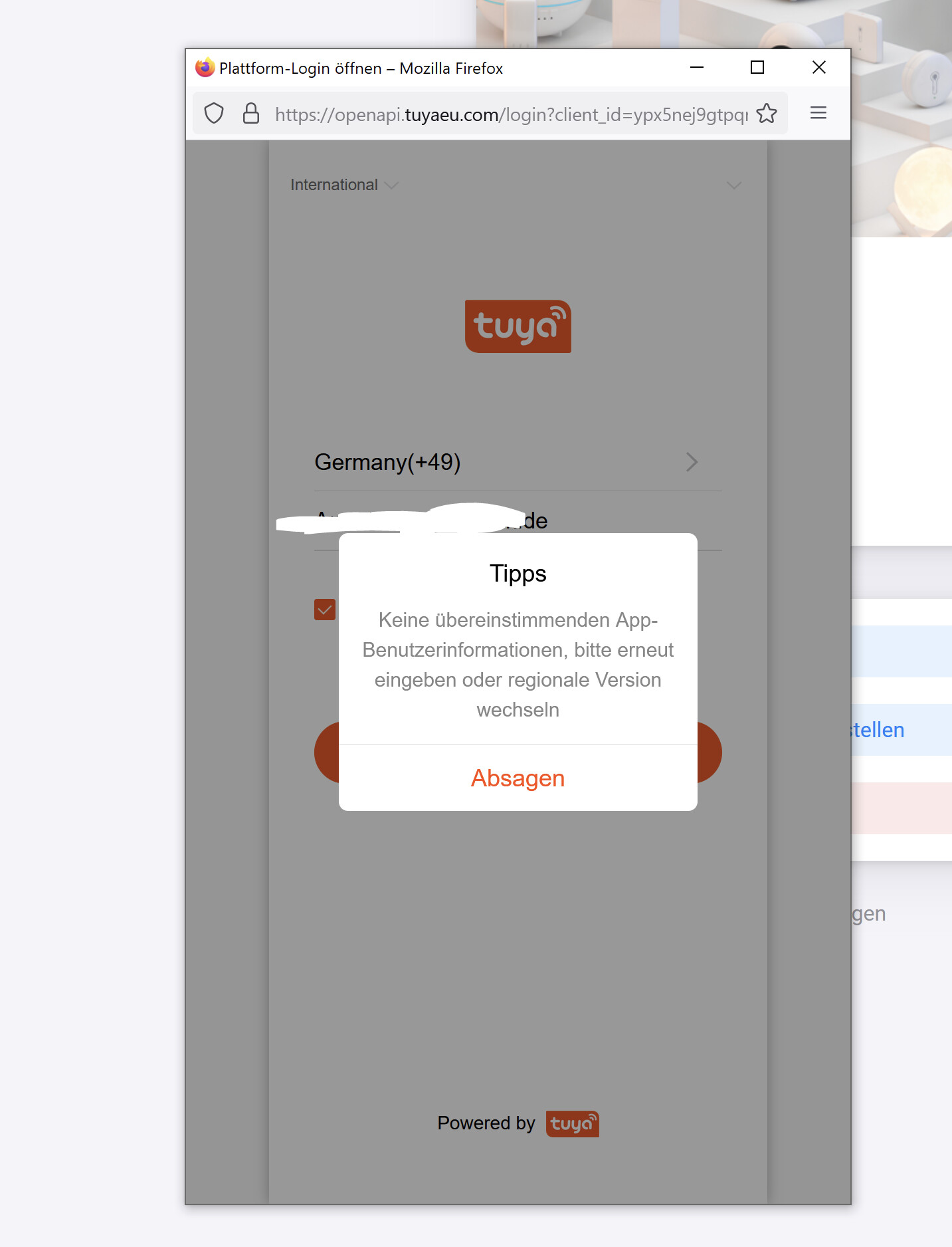 Hallo, ich kann mich nicht mehr an der Tuya App anmelden, ich bekomme immer eine Fehlermeldung!
