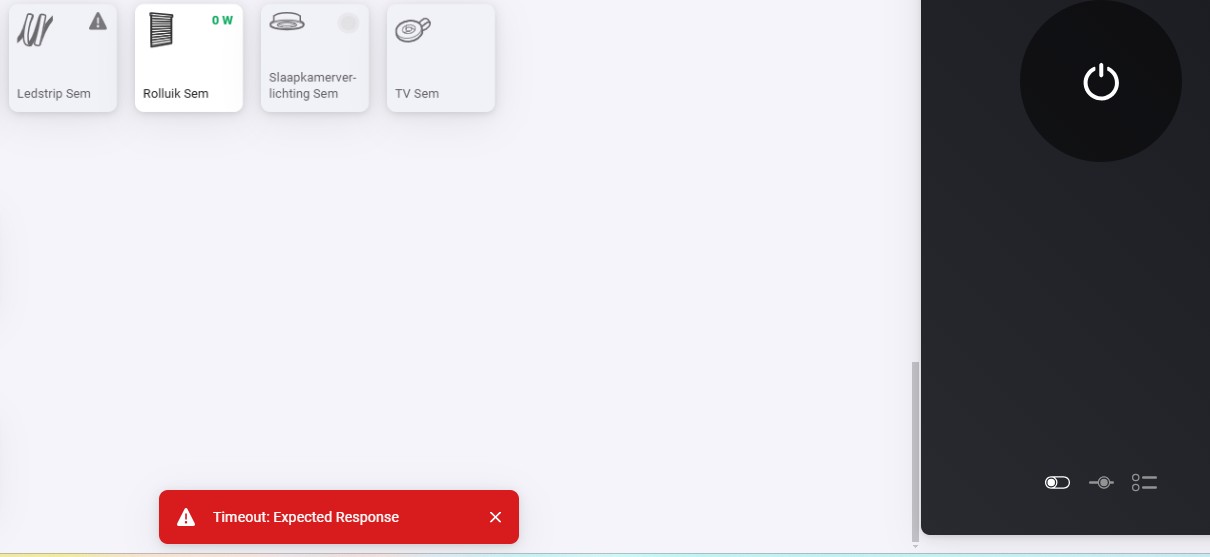 I receive an error on the EcoDim0.5 duo zigbee dimmer. The error message is: Timeout: Expected Response. The ligth will switch on but after a while I get the error. See attached image.