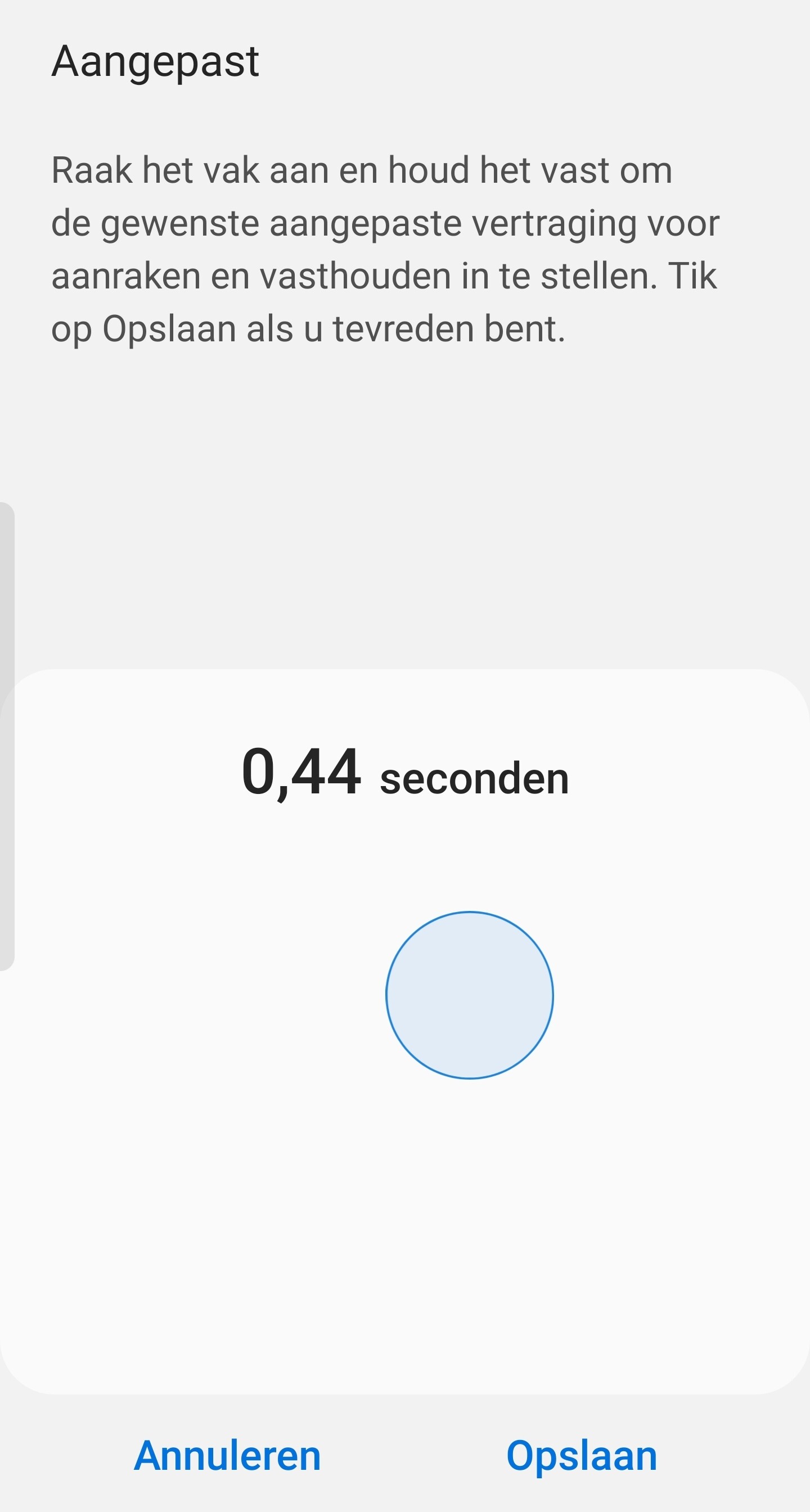 Niet toevallig trager ingesteld via toegankelijkheid / aanraken? Je kunt daar alleen geen keuze maken in milliseconden.