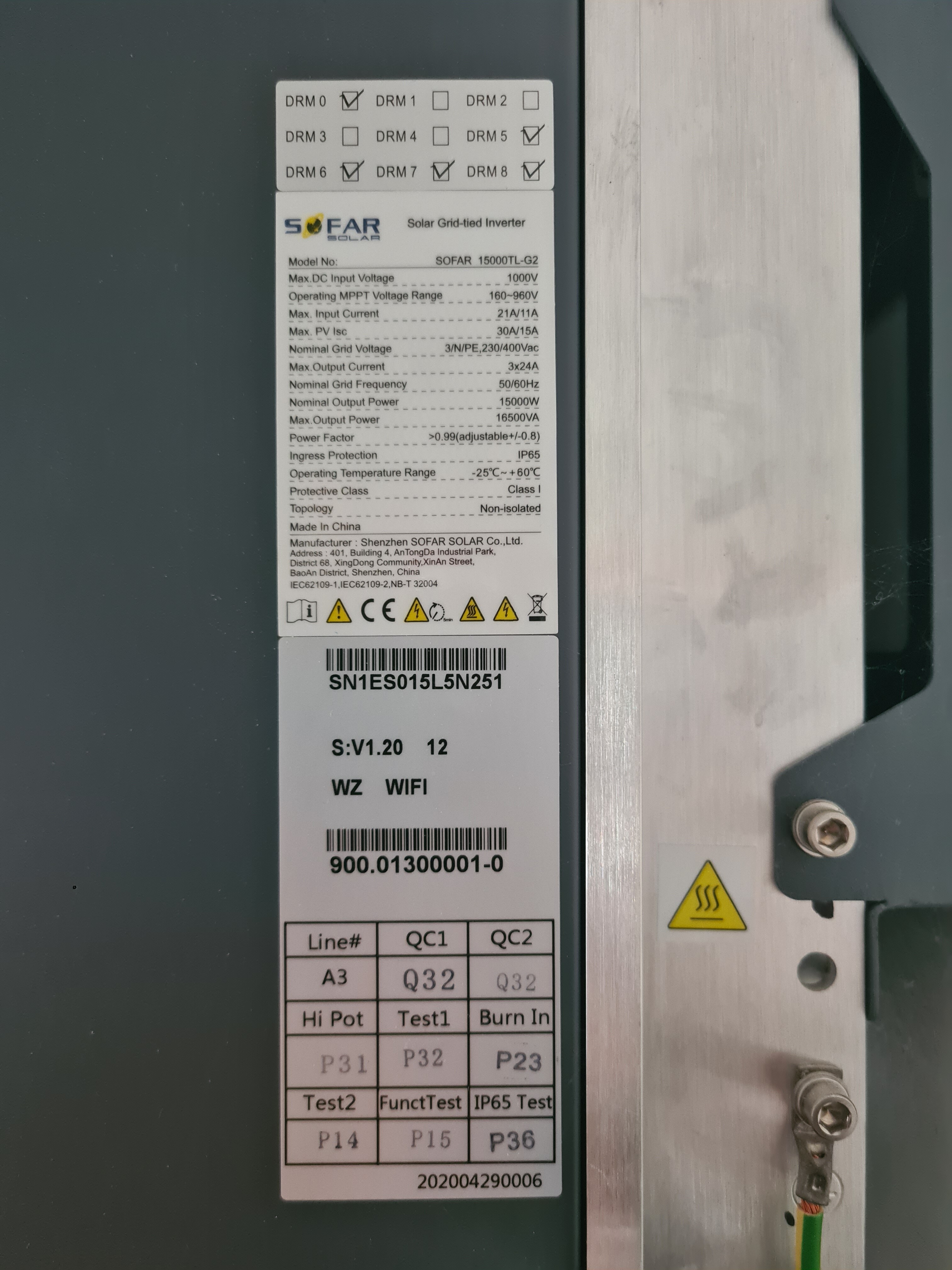 The manual for the Sofar 20000TL-G2 shows where you can find the modbus communication address on your display. It seems the same for the 15000TL-G2