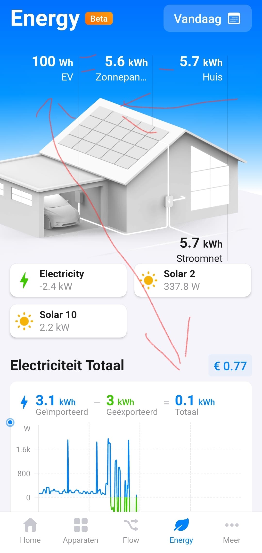 Okay, that doesnât seem very logical to me, as I would expect the sum to be shown in âstroomnetâ (under the animation). Also, you would expect âEVâ to stand for âElectric Vehicle,â especially since the graph includes an illustration of an EV with an animation showing power flowing to and from it (V2X).