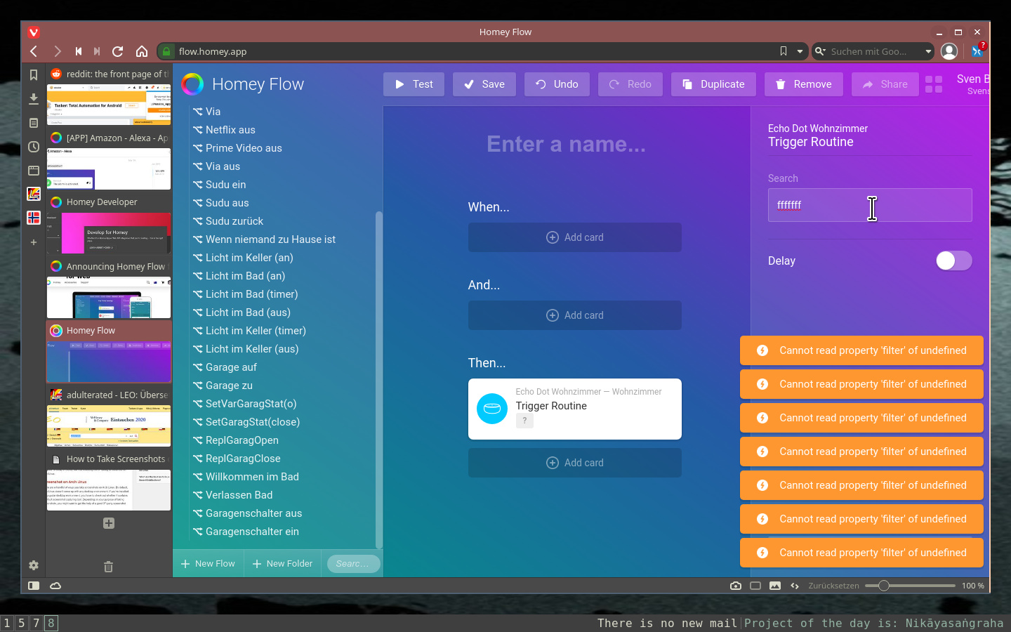 Good idea. Never tried before. As soon as I try, an orange popup appears saying “Cannot read property logger of undefined”. When I start to type in the search field, it pops up again, this time saying “filter” instead of “logger”.