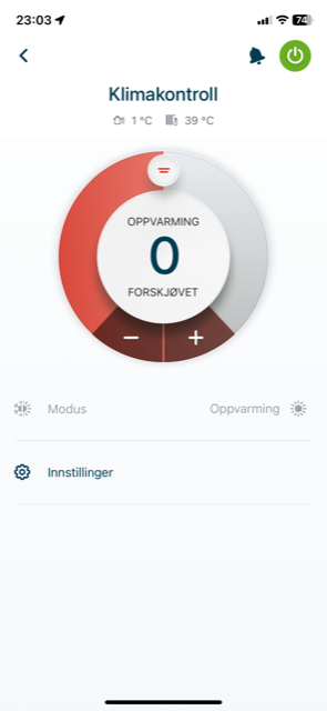 This can be done in two modes, either relatively when the heatpump is in “outdoor compensation” mode, or absolute. For relative mode, I can set +10 to -10 degrees and in absolute mode I can set the watertemp for +20 to +60 degrees.
