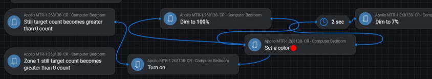 The 2nd one is in a computer bedroom and it shows its setup with 1 zone (did try other combinations of no zones to the 3 zones etc) and the same type of flows + a old one for just zone 1, In homeyPro it doesn’t detect anything but mbar,LX, and Uv. I have reset it using the wiki guides, to make sure its on a good wifi connection, i tried different cables and charging bricks, i tried the Restore Factory button on app and nothing works? does any one have any ideas of what i could be doing wrong? i tried to go to the website to go in my account to see if they would replace the one i have issues with or let me upgrade to the The Apollo Automation R PRO-1 PoE mmWave Multisensor (LD2450) if that sensor would be a better choice, but the website is blocked my antivirus so im hopping someone can give me some help since it seems like HA is well documented on using it, and me having to stand close the sensor to use the radar app in one room, then test advance flows on my PC takes some time and so i want to make sure i’m doing this right