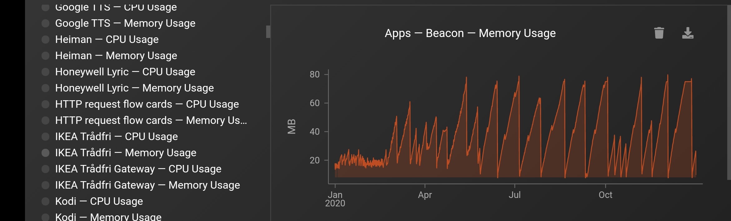 I give most of my apps a restart during the night every day. Keeps the usage low. For beacon eg 8.4 at the moment