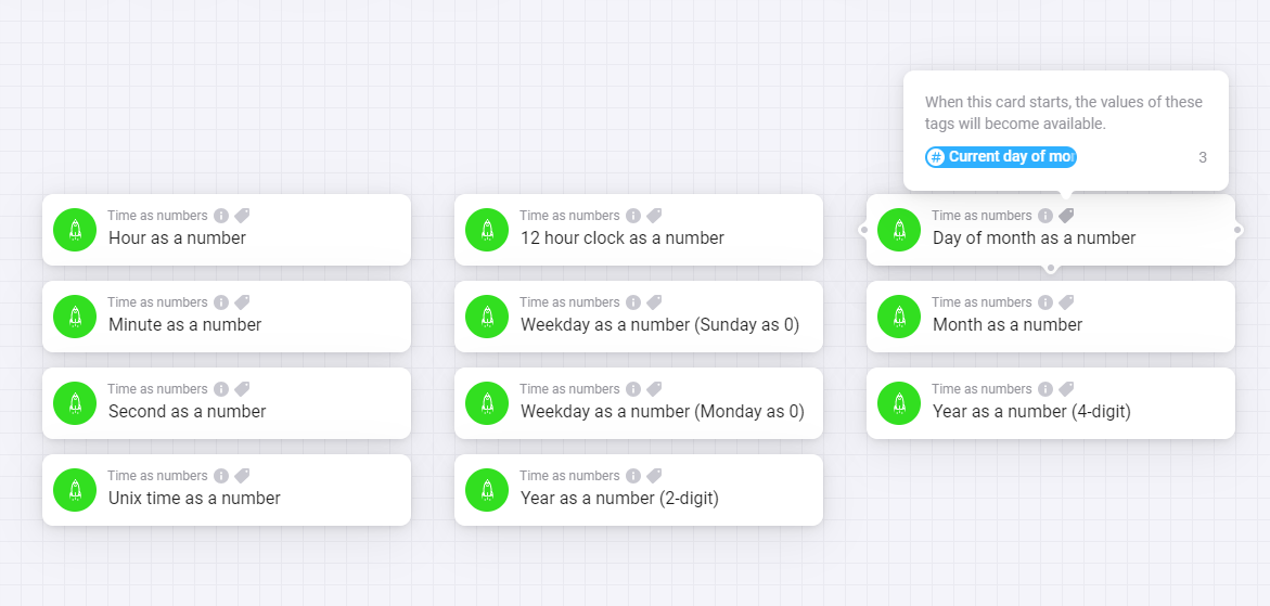 I needed to get the current hour as a tag so i started to build a app and added other things I thought could be useful for someone.