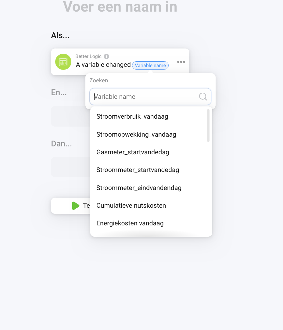 I tried to create a new (standard) flow. The trigger card is a Better Logic card with a variable I wanted to create ‘on the spot’. But that does not work (for me).