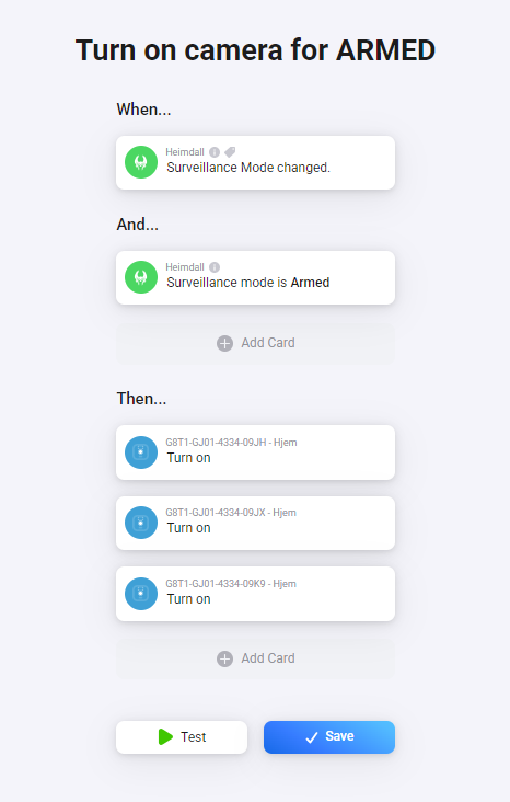 I recently started out my Homey-adventure with the purpose of getting rid of subscription-based alarm system. Hence, I want to have the following work flow: