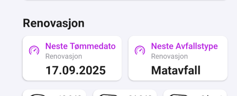 Viser neste tømmingsdato og hvilken avfallstype som skal tømmes.