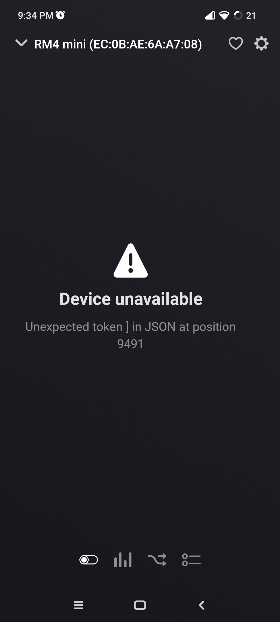 You mean it did happen right after app upgrade to version 3.1.32 ? It looks like that stored JSON got corrupted, weren’t you trying to learn some IR signal and then it got corrupted maybe ? Anyway, please send diag. log and then unfortunately you would have to remove the device and add it back again, until I find the root cause of this behavior ;-(