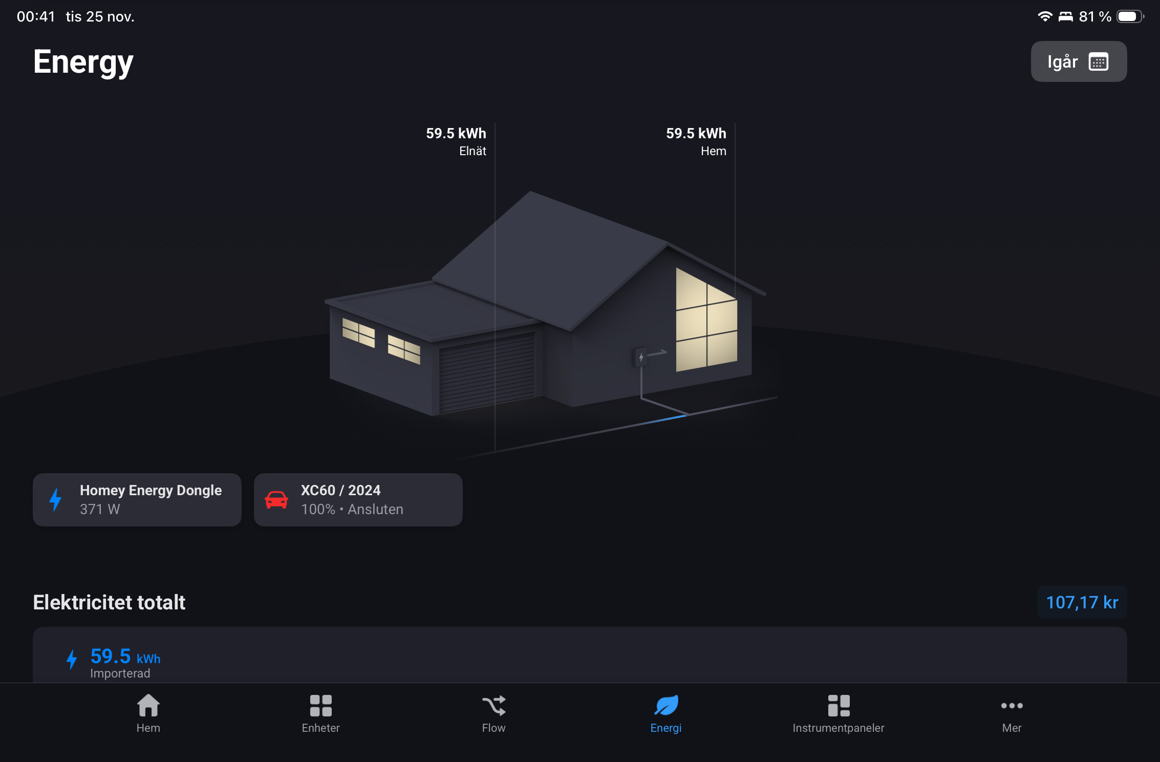 I have the energy dongle on my homey pro 2023 BUT the EV charger does not show in the energy tab!