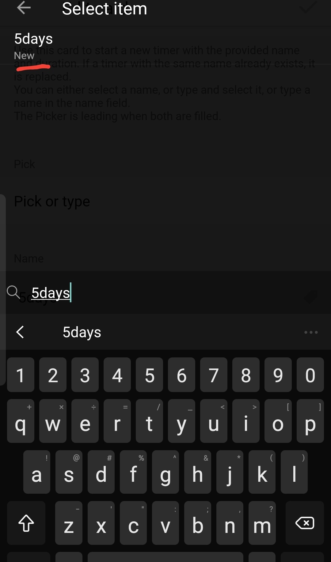 And typing the name of the timer is not allowed, the selection is mandatory: