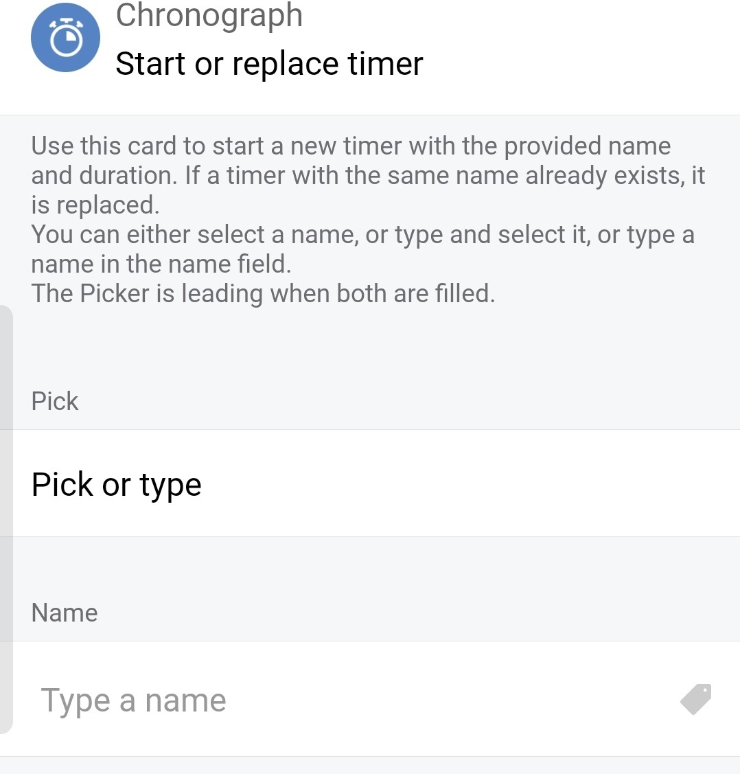 P.S. If i do it trough a flow → then → Chronograph → Start or replace timer → it asks me to choose a type, which there are no items to choose from