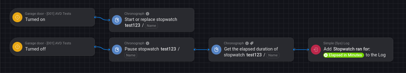 Ik ben een beetje aan het uitproberen met deze app. In dit voorbeeld wil ik weten hoeveel seconden het duurt voordat de bewegingsmelder aangeeft dat er geen beweging is gedetecteerd. Dit krijg ik werkend wanneer ik het blok “ Stop stopwatch Overloop test” eruit haal. Echter dan krijg ik een waarde van 0.02 seconden. Niet helemaal de bedoeling…