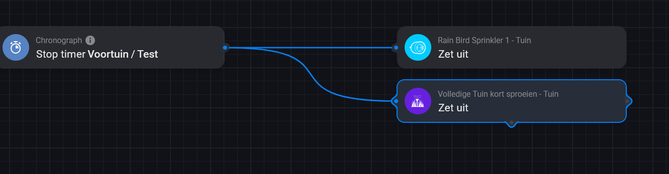 For my garden I make a flow water irrigation for 5 zones. I use the delay time option for the different zones. Instead of the the delay time option I want to use the Chronograph ( if possible )