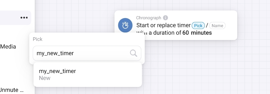 Enter the duration and unit and save the flow. Note: this way you can also select an existing timer