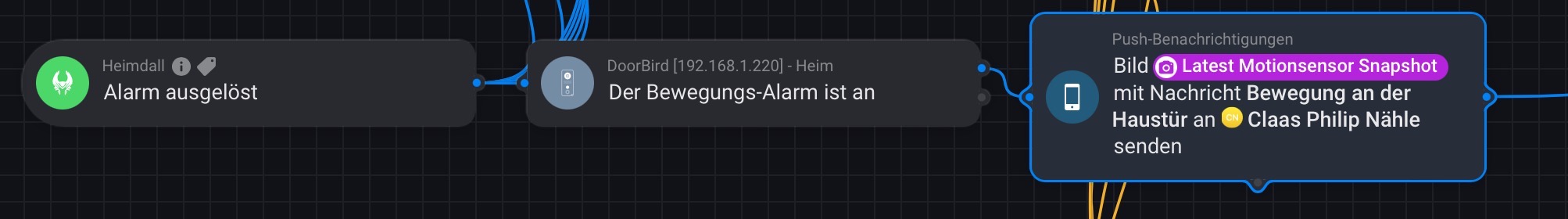 Another question: I am using Heimdall to trigger alarm events with door bird being one of motions sensitive devices: