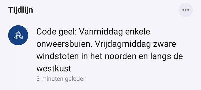 Yes I now try to capture that in an update so that each change only comes in 1x. KNMI itself repeats the message continuously. We will get there. Just be patient. For now, yes/no is a nice temporary solution.