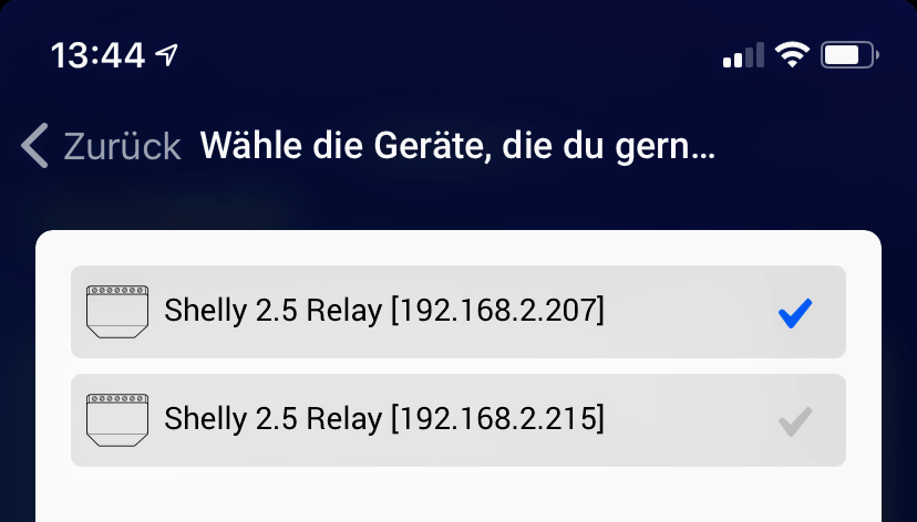 I could add one Shelly 1 and two Shelly 2.5 without any problems. But it does not recognize the other devices. The 2.5 always shows the already added devices.