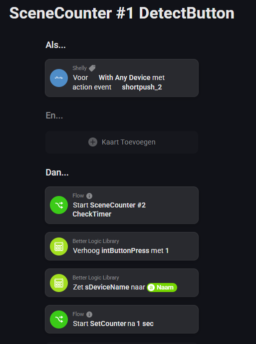 Iâm having issues with the Action_Event card. In earlier days, this was a generic card that reported the device and action. Using that I created a few simple flows that count the number of times a button is pressed, and identifies which devices was used. Then a specific flows is started, depending on the action, the device and the number of times pushed.