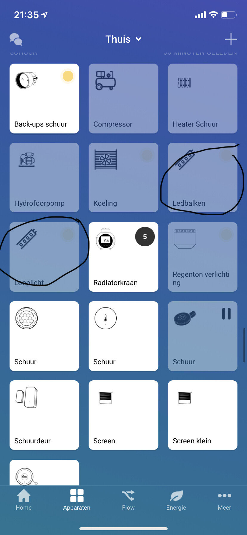 Running light in shed can be switched on with motion sensor and when it comes on, the LED bars can be switched on, but now the running lamp jumps, but not the LED bars, but the buttons in homey also go