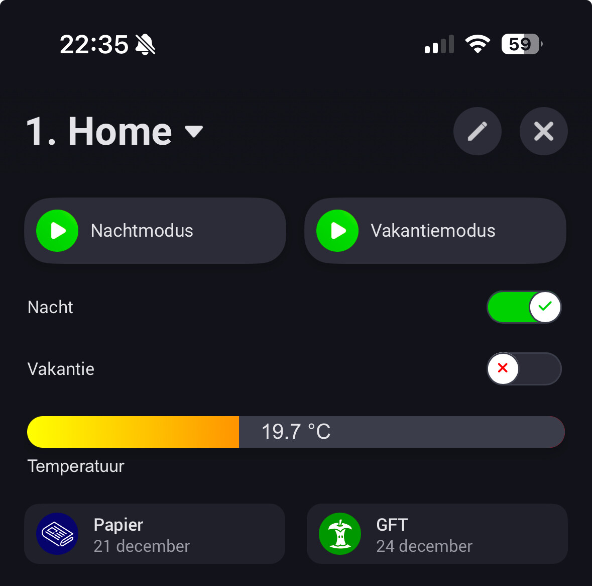 One datavista dash which shows statusses and one homey dash for controlling them.