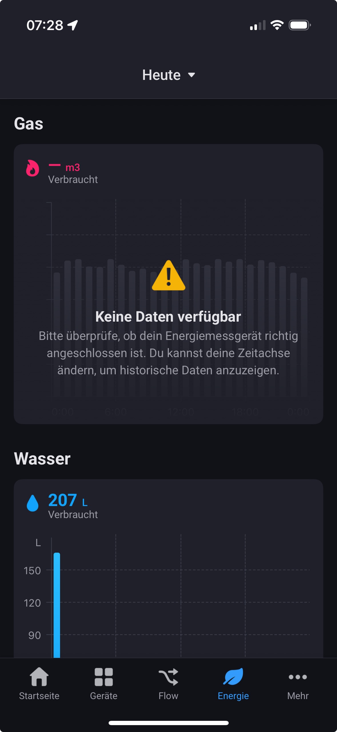 Ok, I gave the test version a try - especially because I would like to get the gas-/water-meter in the Energy tab. May be someone has done this already I can give me a hint. The water-meter works as it should in the energy tab, I do see the water usage in liter . But for the gas-meter I do get an empty Graph which says “No Data available” in the Energy tab even after 12 hours… I’ve seen that the meter changed after the comma but not before the comma since I’ve configured it (half day ago). May be that’s the issue? During summertime, only my boiler works with gas, so I don’t use that much gas per day.
