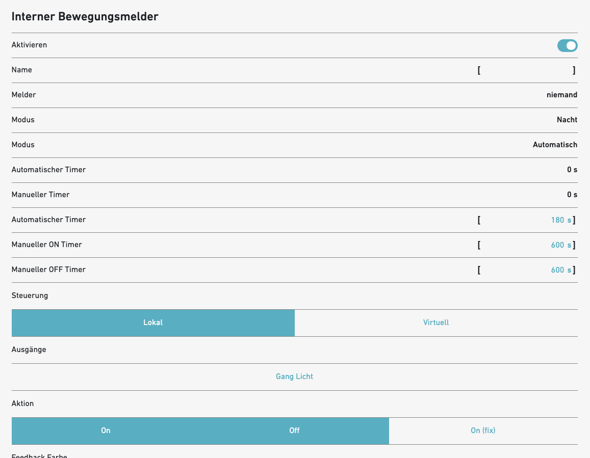 BDW: Is the “Interner Bewegungsmelder” activated at all ? Please check if it is configured correctly