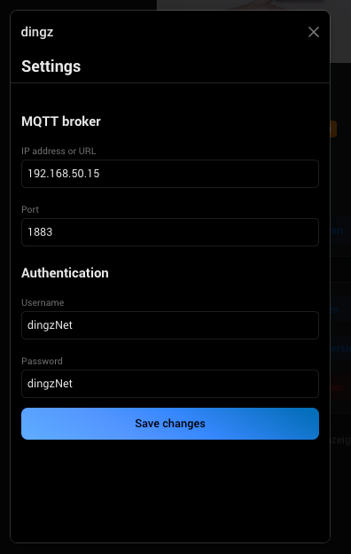 If you use the Homey MQTT-Broker, then it is sufficient to enter the URL “localhost” or “127.0.0.1” at MQTT-Broker settings, because the rest is done automatically by dingzNet.