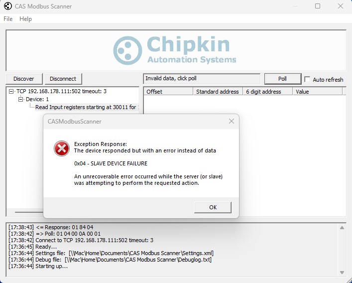 It works like this, goto settings and configure a read. After that you can trigger the read by clicking the ‘poll’ button.