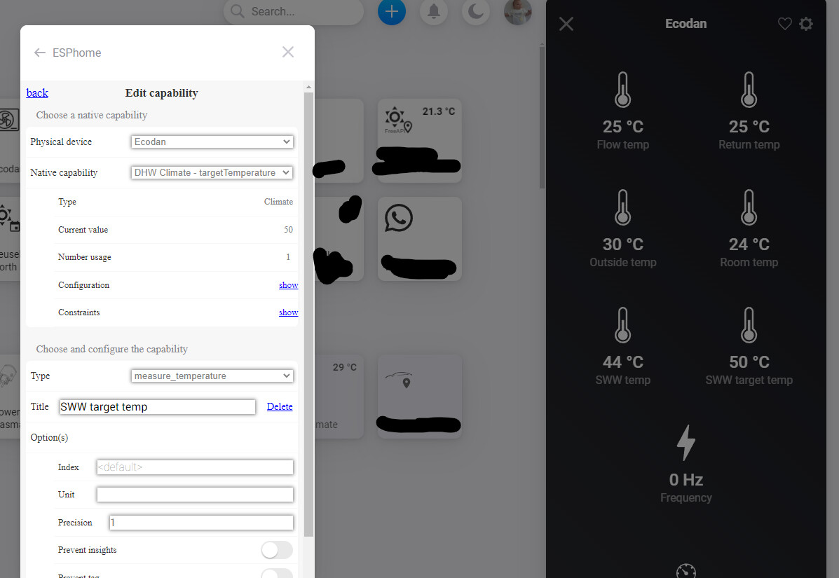 Instead of using Melcloud i’m controlling my Mitsubishi Heatpump via a ESP32 controller which I also integrated to Home Assistent. However I’m running that on the side and want to control everything via Homey.