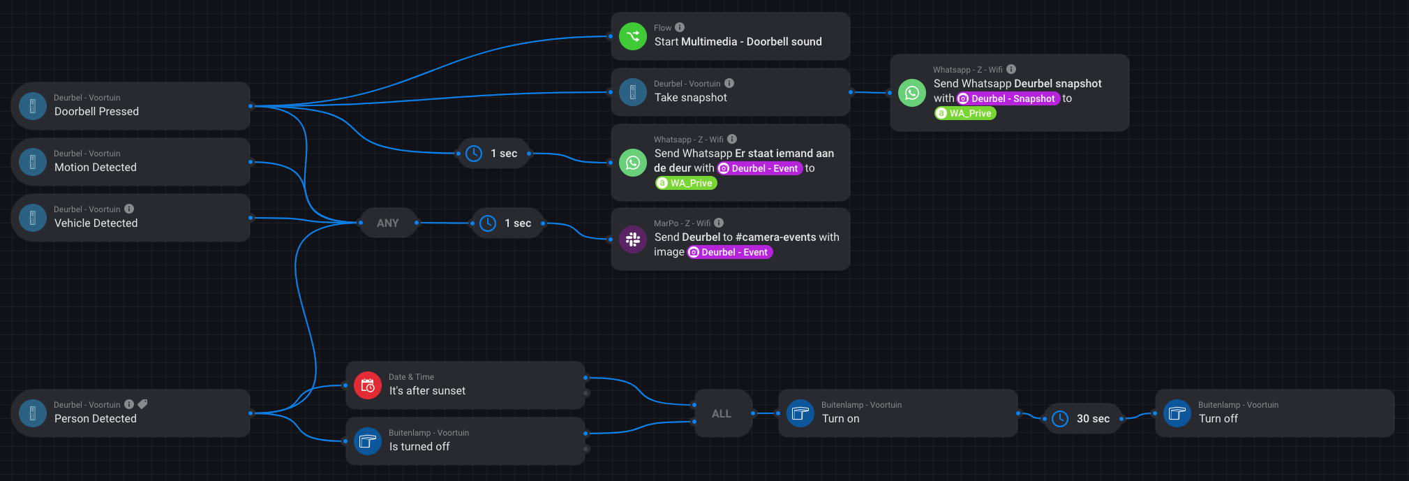 martijn het is gelukt, eerste advanced flow met eufy die de hal verlichting automatisch aanstuurt als er wordt aangebeld en als wij 2 thuis zijn. ik wil er ook nog een als aan toevoegen met lichtsterkte maar heb nog geen motion sensor in hal hangen.