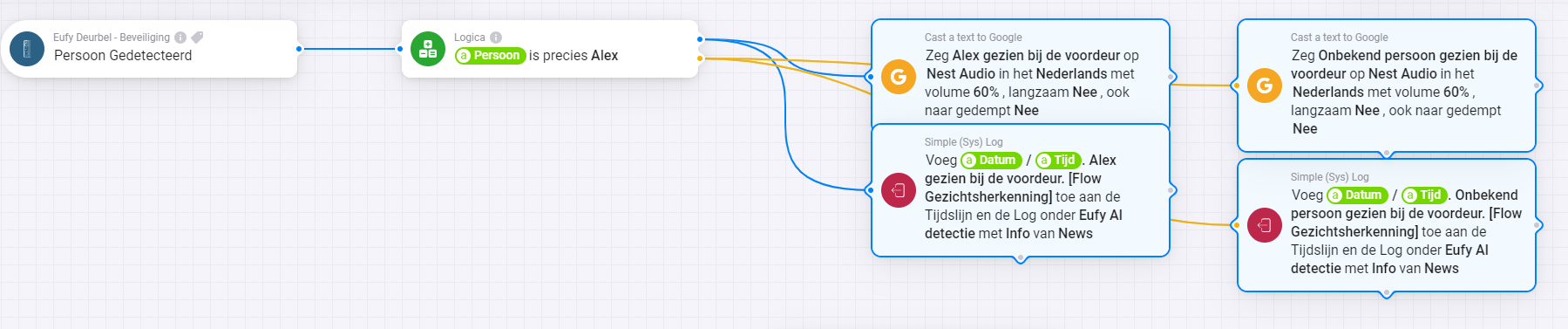 This is the whole flow. When a person is not recognized than Google says unknown person seen at the front door.